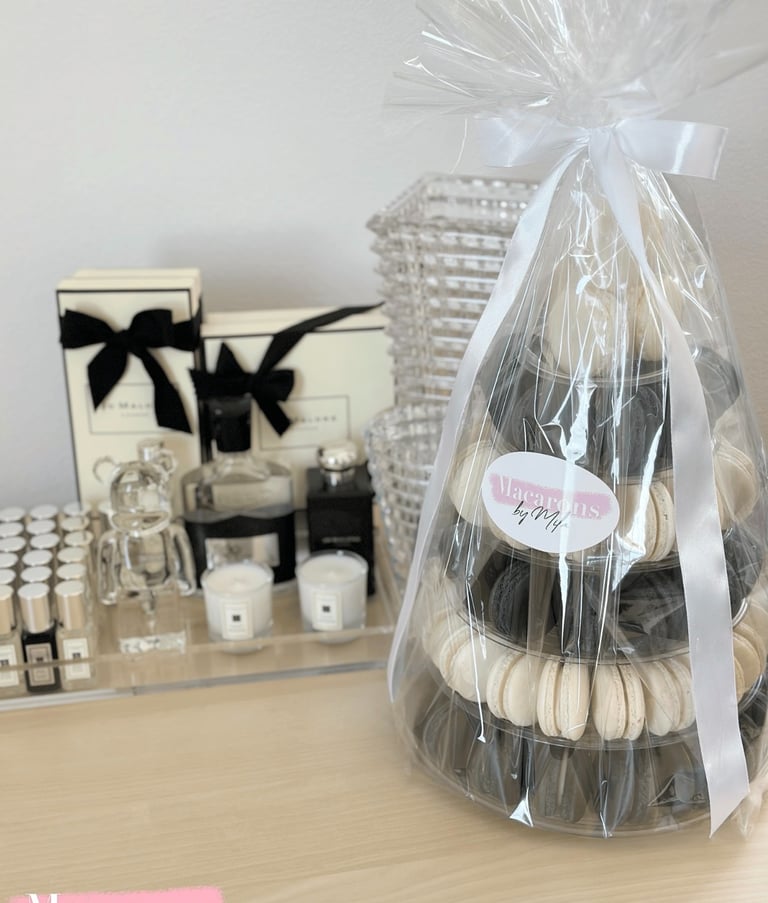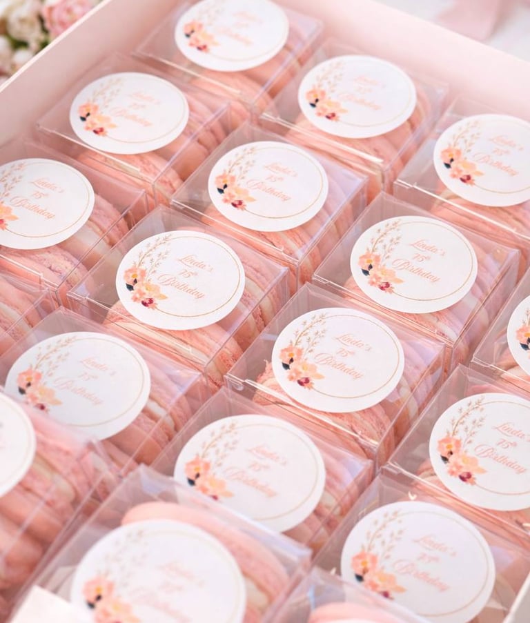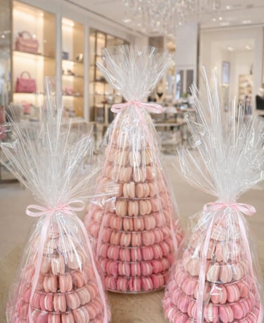 Every order is thoughtfully customized to reflect your vision, from refined color palettes and flavor selections to bespoke packaging and presentation. Whether for an intimate celebration or a large-scale corporate event, each detail is curated to deliver a polished, luxury dessert experience.