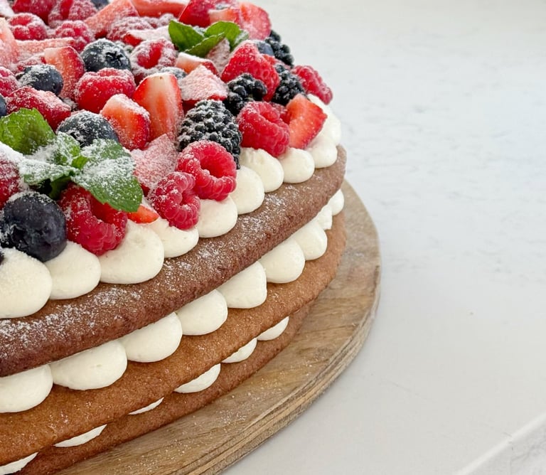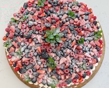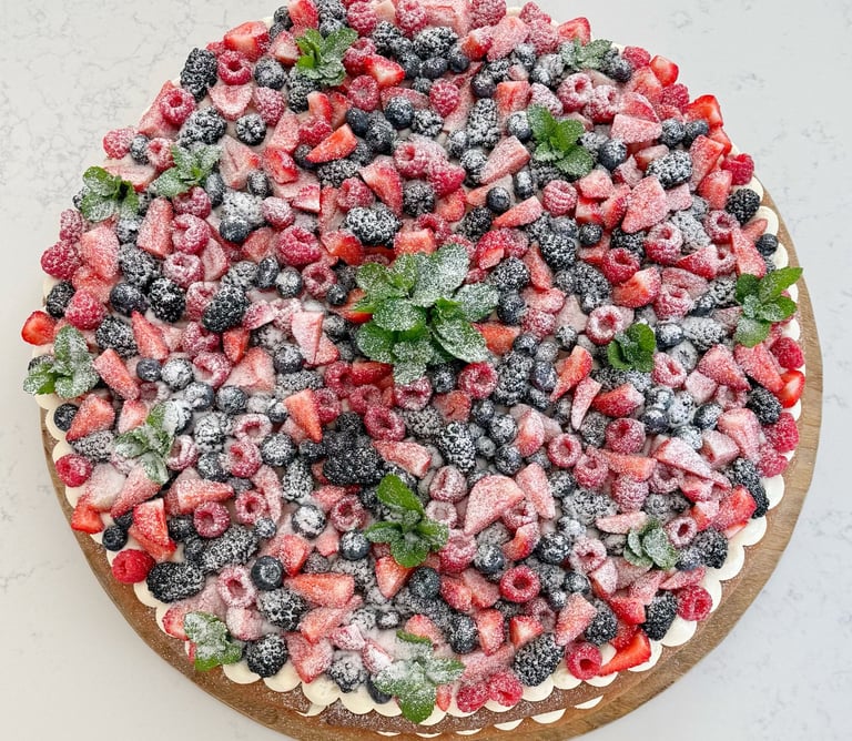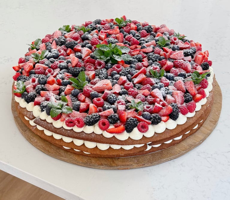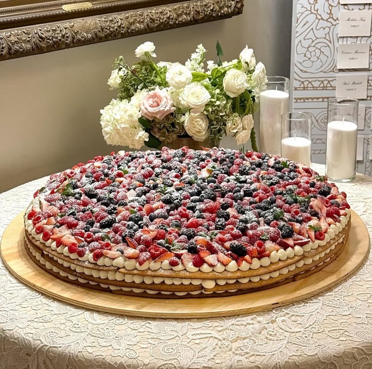 A delicate and elegant Italian wedding cake made with crisp pastry layers, rich cream, and fresh fruit—perfect for couples looking for a light, sophisticated dessert that impresses without being overly sweet. Crafted with love and tradition in every bite.